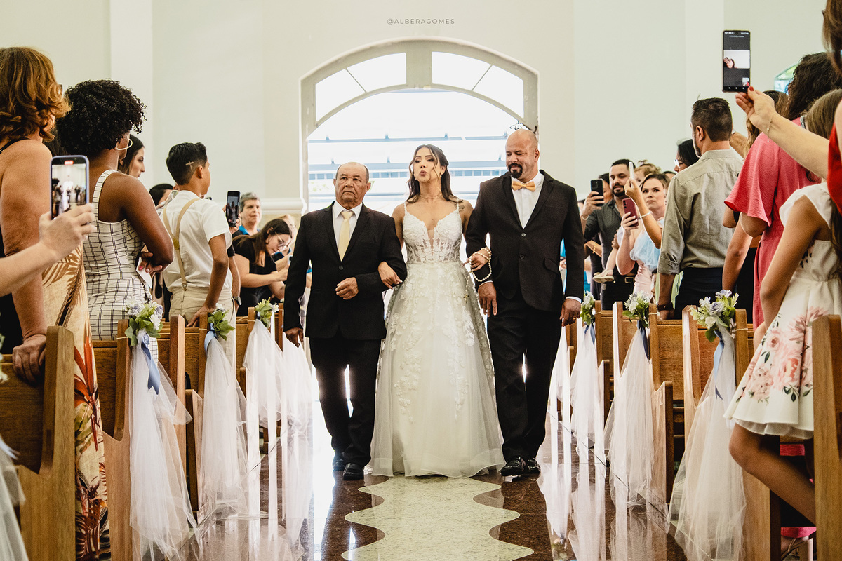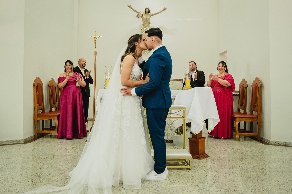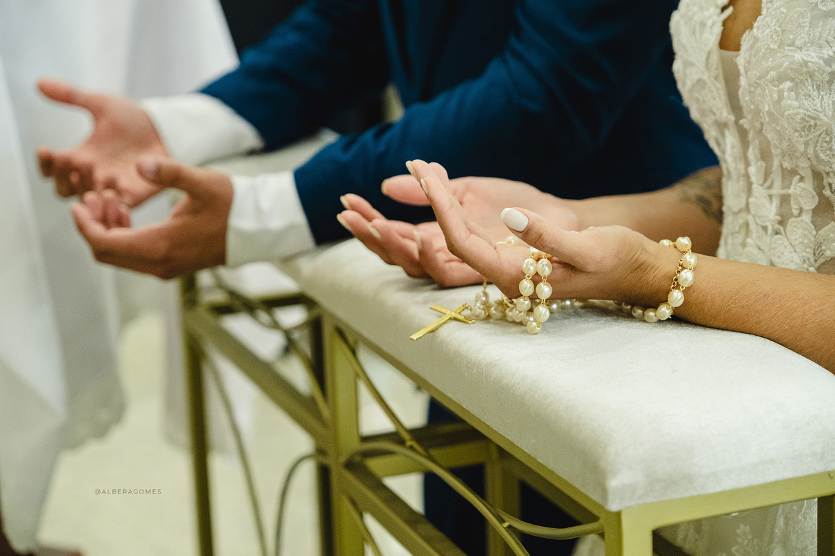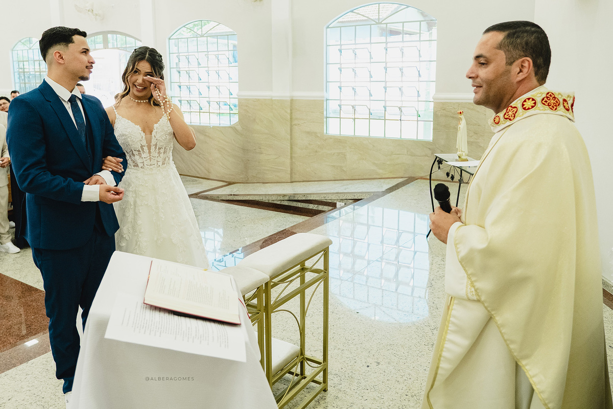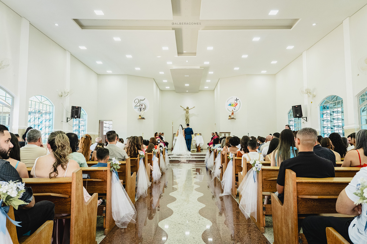 A cerimônia religiosa aconteceu na Capela Nossa Senhora Rainha da Paz, um cenário que combinou perfeitamente com a delicadeza e a profundidade desse momento. Cada olhar, cada lágrima e cada sorriso revelavam o quanto aquele instante era esperado e vivido intensamente. Foi impossível não se emocionar ao ver a entrega dos votos, o carinho dos familiares e a presença de Deus marcando cada detalhe da união.