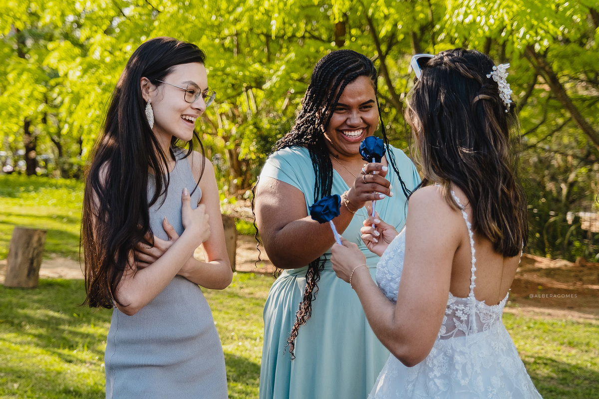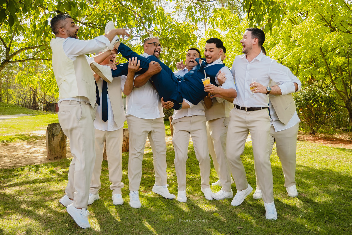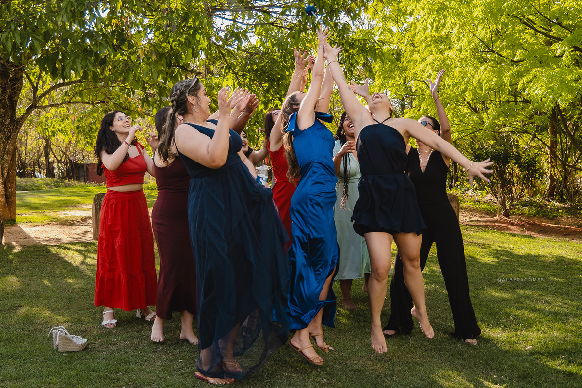 Após a cerimônia, a festa seguiu para a Chácara Estação Vida Boa, onde a alegria tomou conta. A recepção foi animada, cheia de abraços, risadas, dança e celebração — uma verdadeira extensão do amor que João Victor e Beatriz transbordam. Amigos e familiares celebraram juntos, criando memórias leves, espontâneas e cheias de vida.